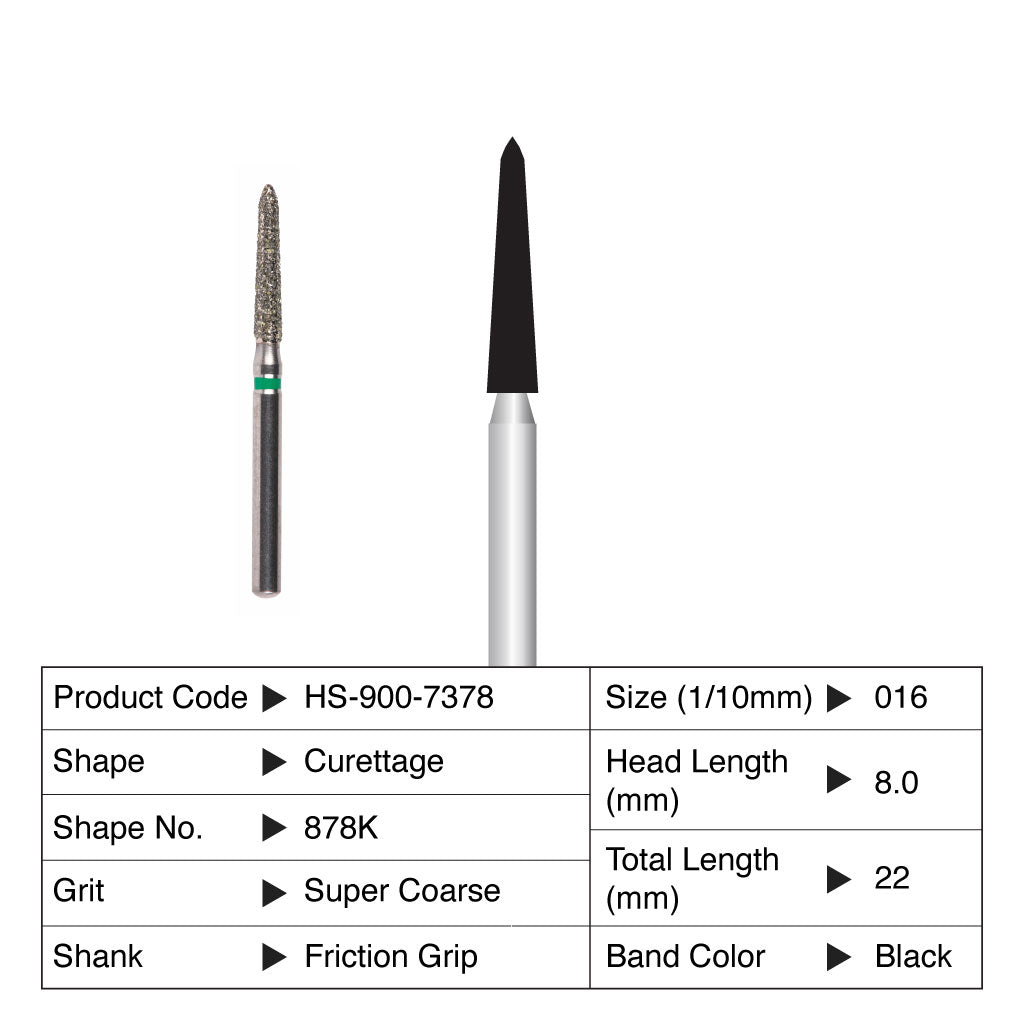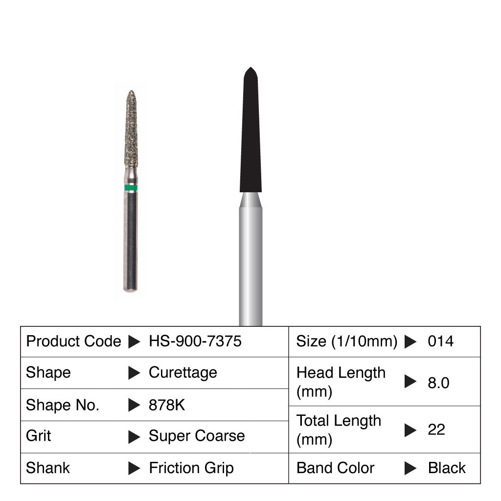 HS Maxima Diamond Bur Curettage Friction Grip Super Coarse 878K-014SC 5/Pack Currently not accepting retail orders.. Currently not accepting retail orders..