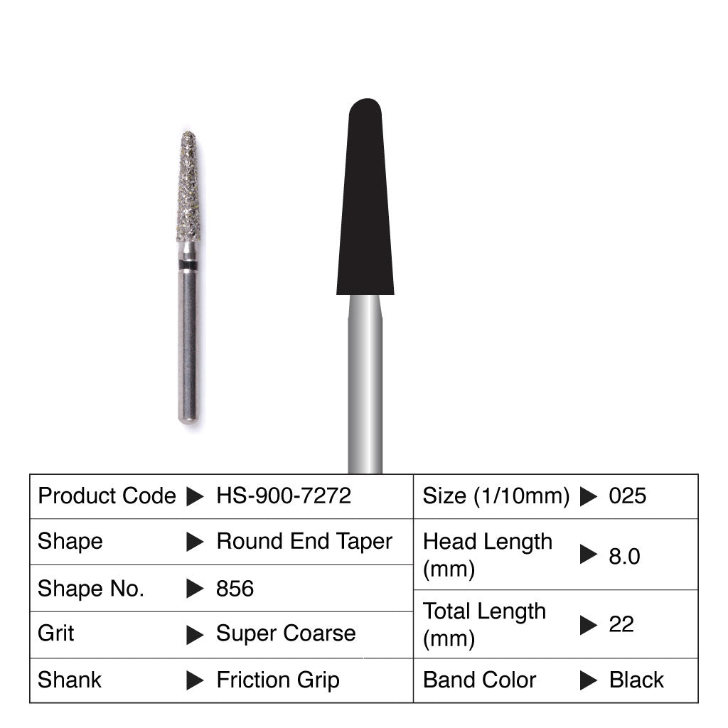 HS Maxima Diamond Bur Round End Taper Friction Grip Super Coarse 856L-020SC 5/Pack Currently not accepting retail orders.. Currently not accepting retail orders..