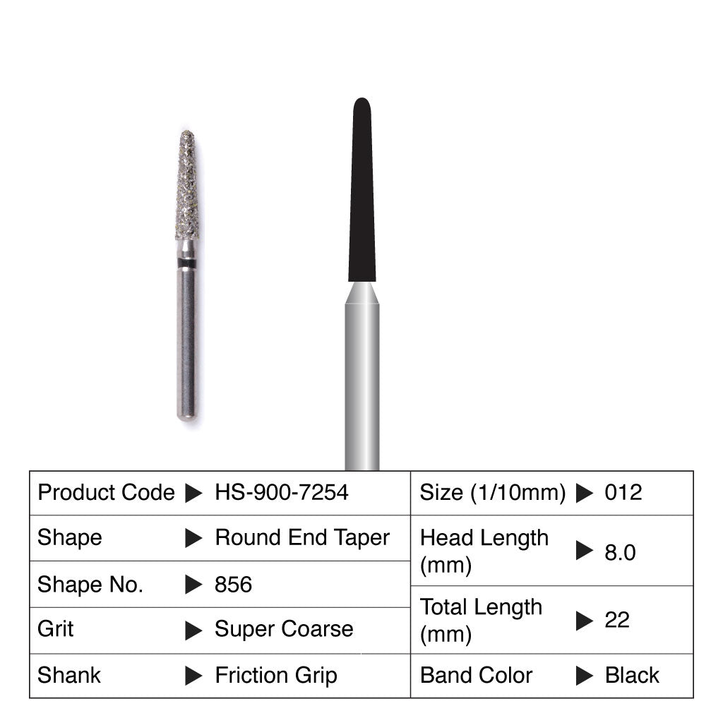 HS Maxima Diamond Bur Round End Taper Friction Grip Coarse 856-012C 5/Pack Currently not accepting retail orders.. Currently not accepting retail orders..