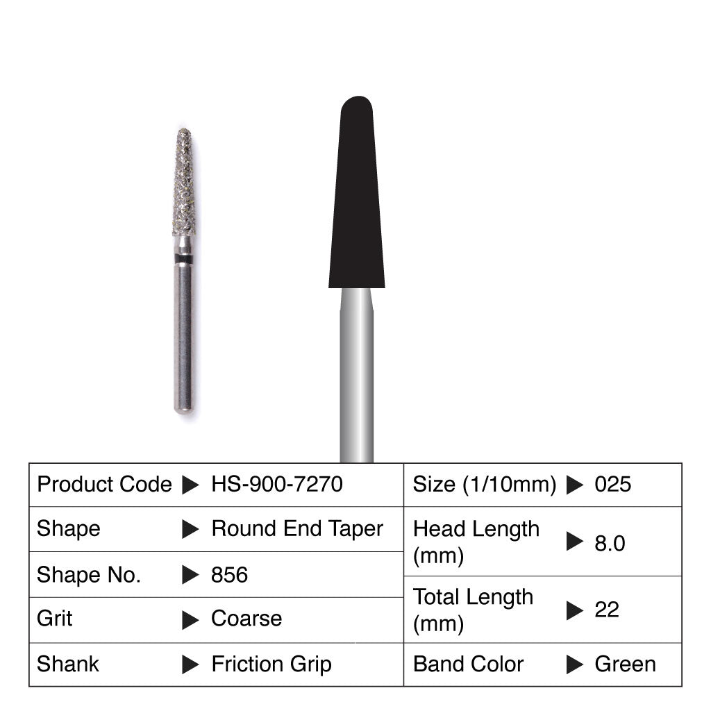 HS Maxima Diamond Bur Round End Taper Friction Grip Coarse 856-025C 5/Pack Currently not accepting retail orders.. Currently not accepting retail orders..