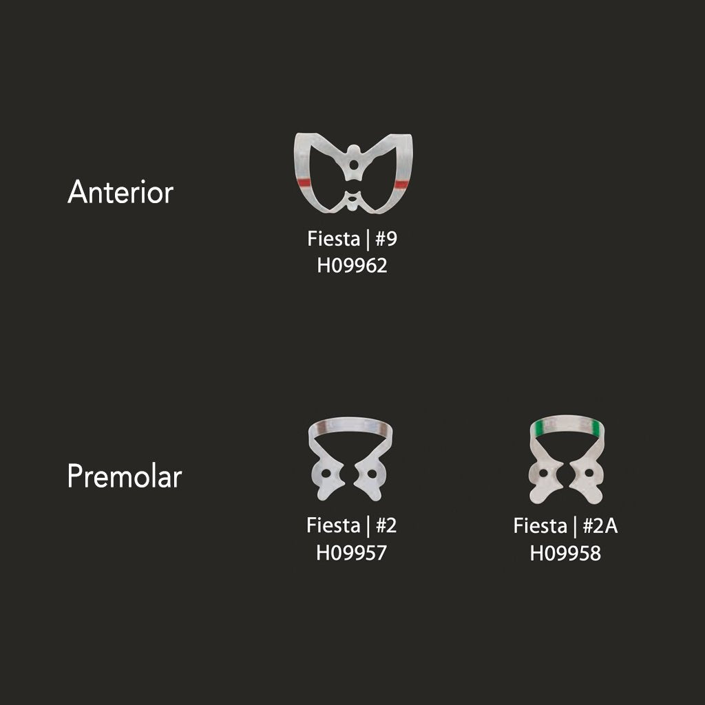 Coltene Fiesta Rubber Dam Clamp 9 Color Coded Winged Clamp 9/Pack Currently not accepting retail orders..