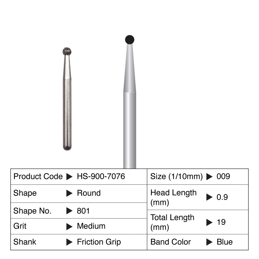 HS Maxima Diamond Bur Round Friction Grip Medium 801-009M 5/Pack Currently not accepting retail orders.. Currently not accepting retail orders..