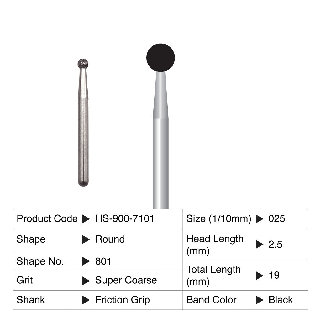 HS Maxima Diamond Bur Round Friction Grip 801-025SC Super Coarse 5/Pack Currently not accepting retail orders.. Currently not accepting retail orders..