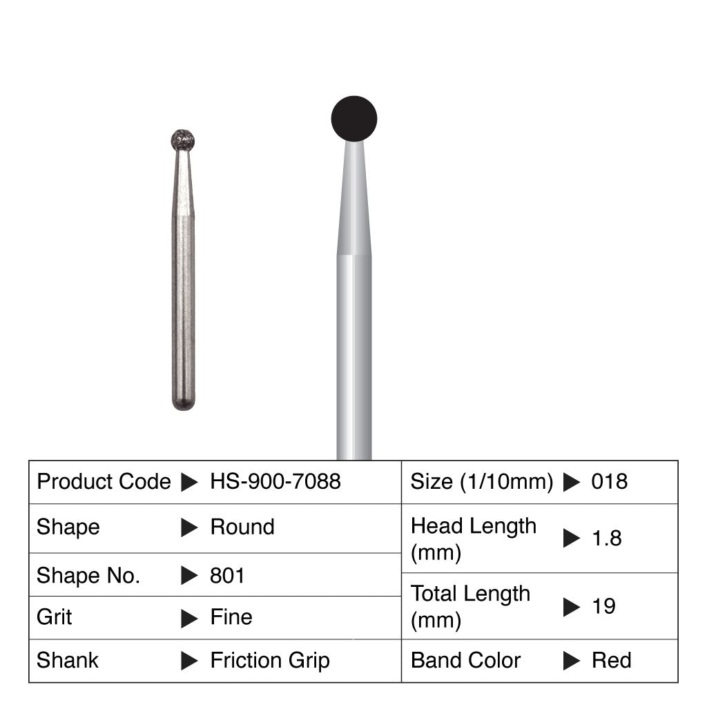 HS Maxima Diamond Bur Round Friction Grip Fine 801-018F 5/Pack Currently not accepting retail orders.. Currently not accepting retail orders..