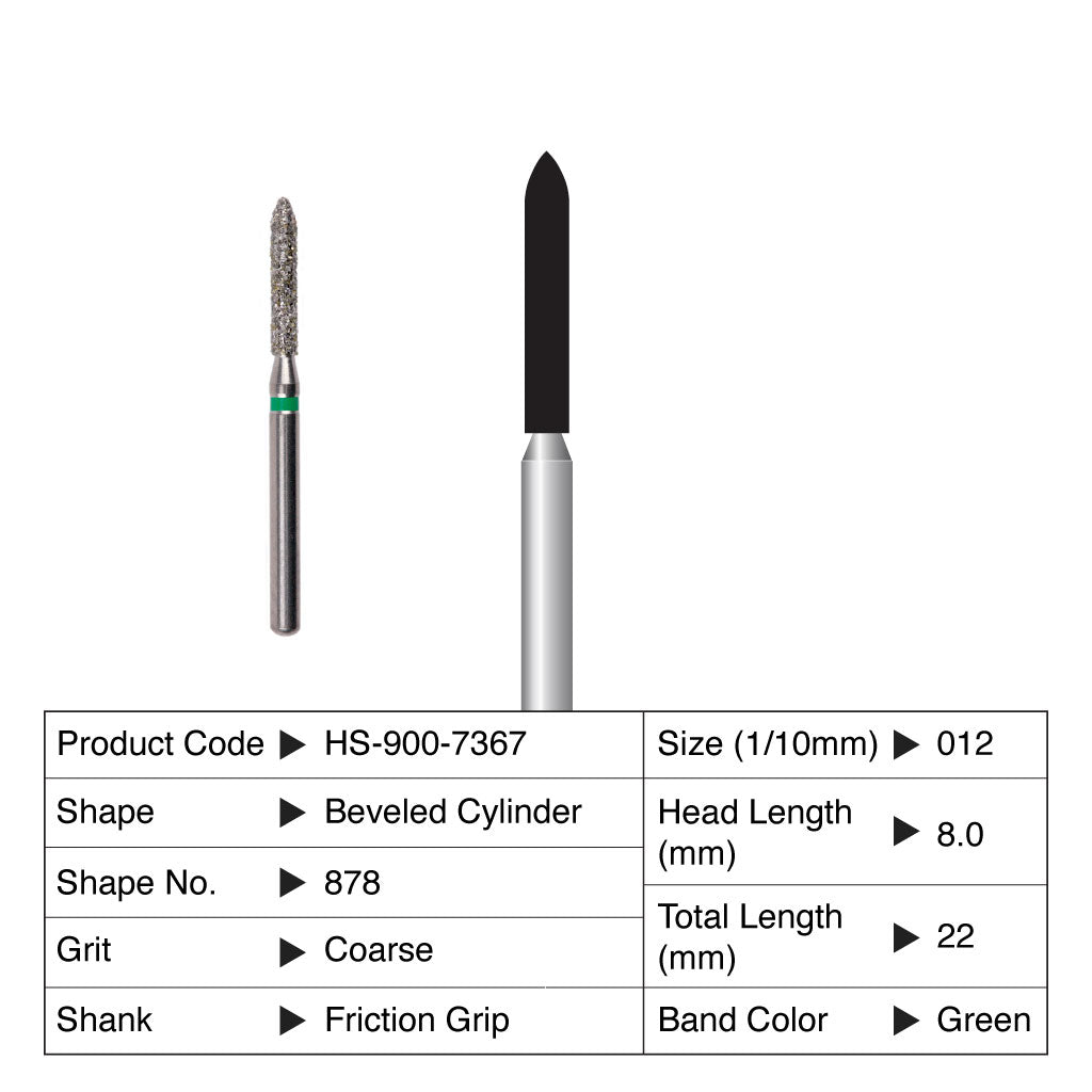 HS Maxima Diamond Bur Beveled Cylinder Friction Grip Coarse 878-012C 5/Pack Currently not accepting retail orders.. Currently not accepting retail orders..