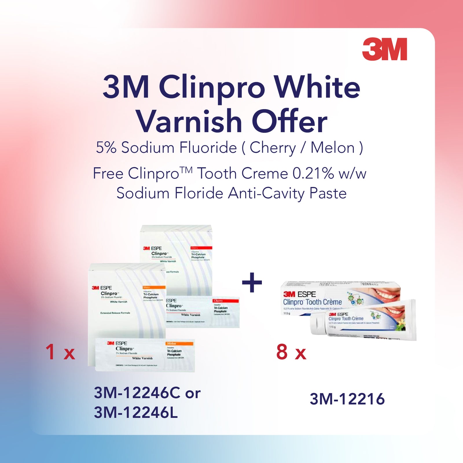 3M Clinpro White Varnish 5% Sodium Fluoride Varnish Cherry 100/Box Currently not accepting retail orders.. Currently not accepting retail orders..