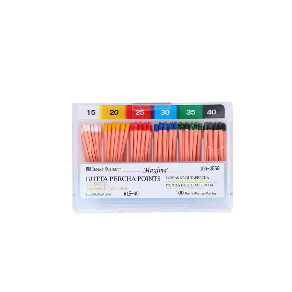HS Maxima Gutta Percha Points 0.06 15-40 Assorted 100/Box Currently not accepting retail orders.. Currently not accepting retail orders..