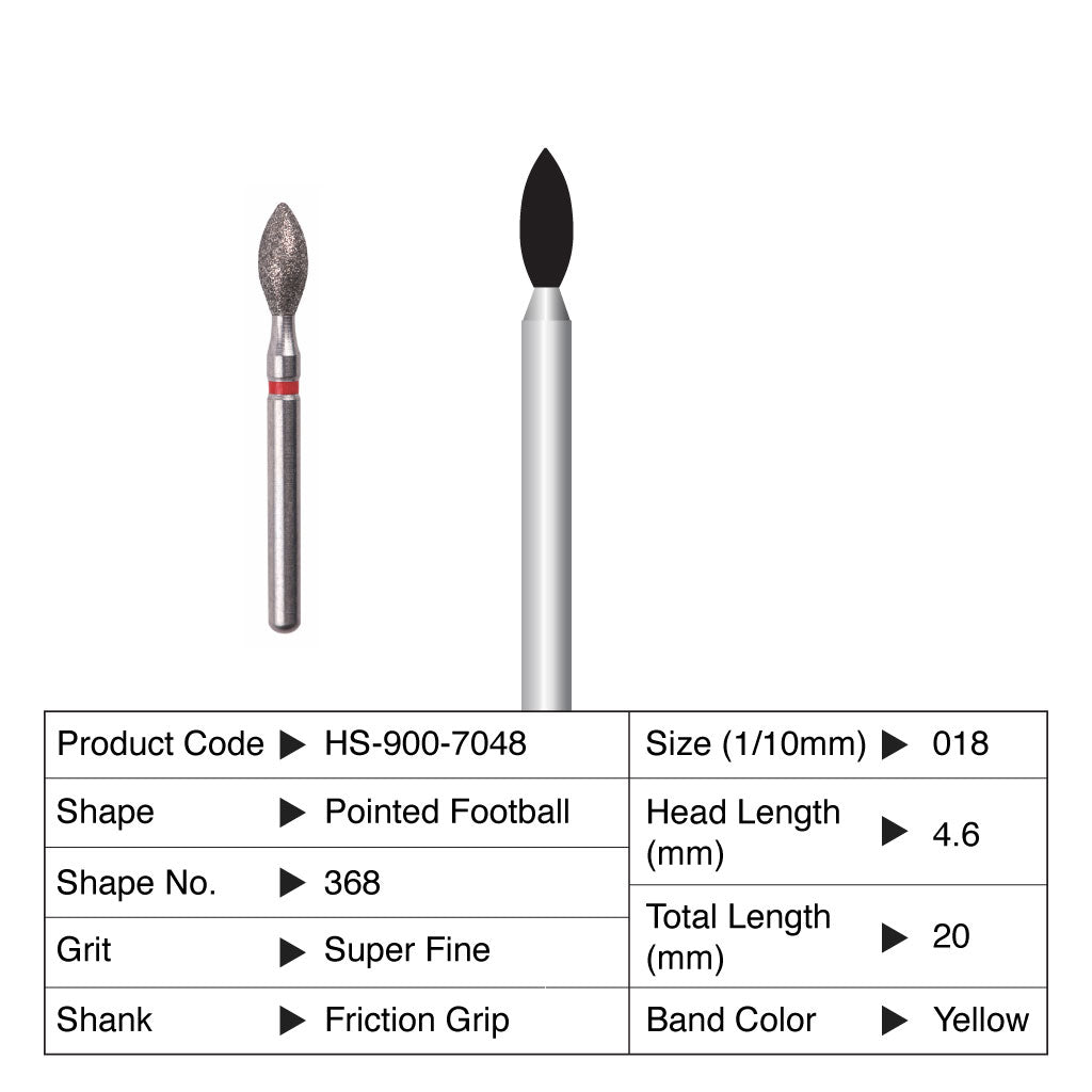 HS Maxima Diamond Bur Pointed Football Friction Grip Super Fine 368-018SF 5/Pack Currently not accepting retail orders.. Currently not accepting retail orders..