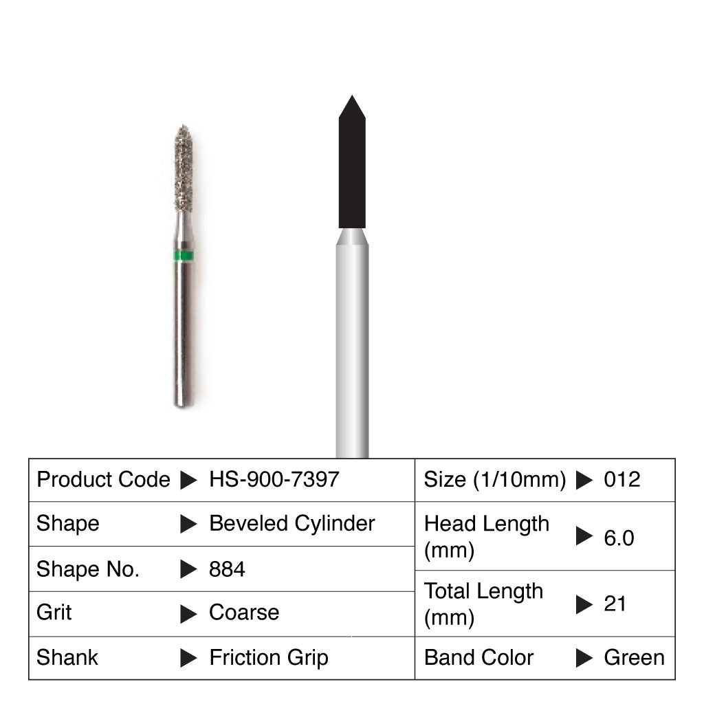 HS Maxima Diamond Bur Beveled Cylinder Friction Grip Coarse 884-012C 5/Pack Currently not accepting retail orders.. Currently not accepting retail orders..