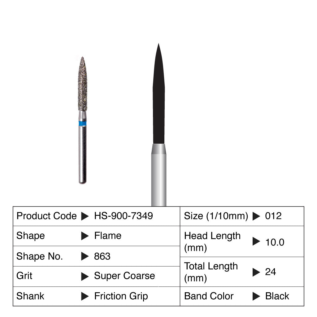 HS Maxima Diamond Bur Flame Friction Grip Super Fine 863-012SF 5/Pack Currently not accepting retail orders.. Currently not accepting retail orders..