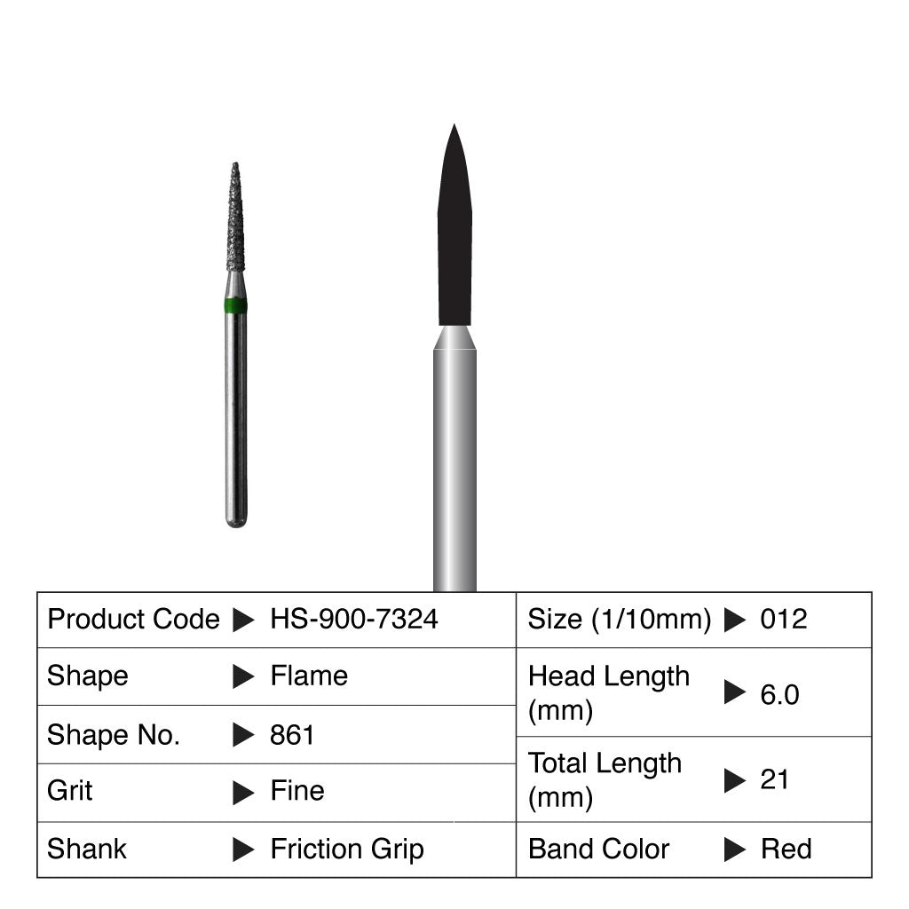 HS Maxima Diamond Bur Flame Friction Grip Fine 861-012F 5/Pack Currently not accepting retail orders.. Currently not accepting retail orders..