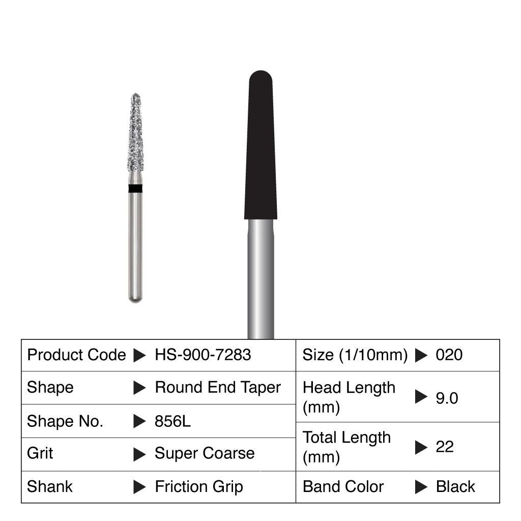 HS Maxima Diamond Bur Round End Taper Friction Grip Super Coarse 856L-020SC 5/Pack Currently not accepting retail orders.. Currently not accepting retail orders..