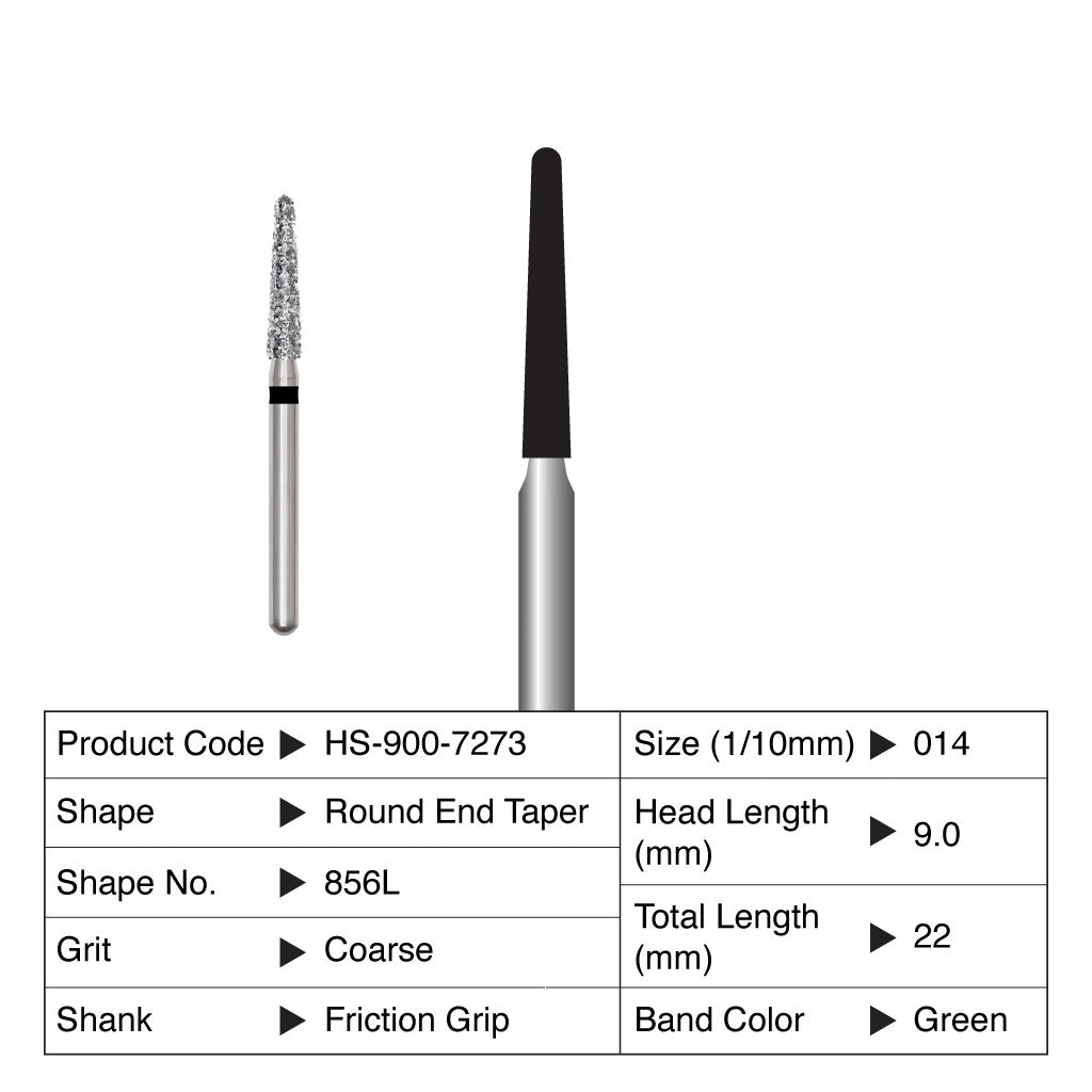HS Maxima Diamond Bur Round End Taper Friction Grip Coarse 856L-014C 5/Pack Currently not accepting retail orders.. Currently not accepting retail orders..
