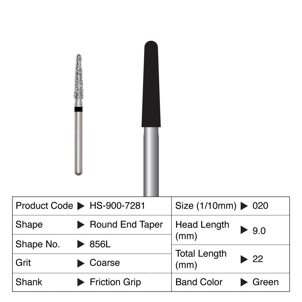 HS Maxima Diamond Bur Round End Taper Friction Grip Coarse 856L-020C 5/Pack Currently not accepting retail orders.. Currently not accepting retail orders..