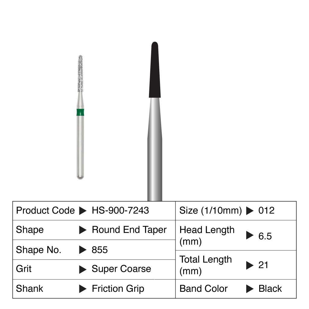 HS Maxima Diamond Bur Round End Taper Friction Grip Super Coarse 855-012SC 5/Pack Currently not accepting retail orders.. Currently not accepting retail orders..