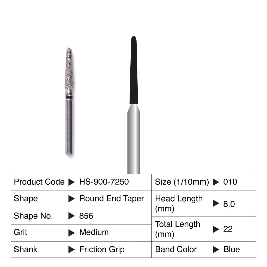 HS Maxima Diamond Bur Round End Taper Friction Grip Medium 856-010M 5/Pack Currently not accepting retail orders.. Currently not accepting retail orders..
