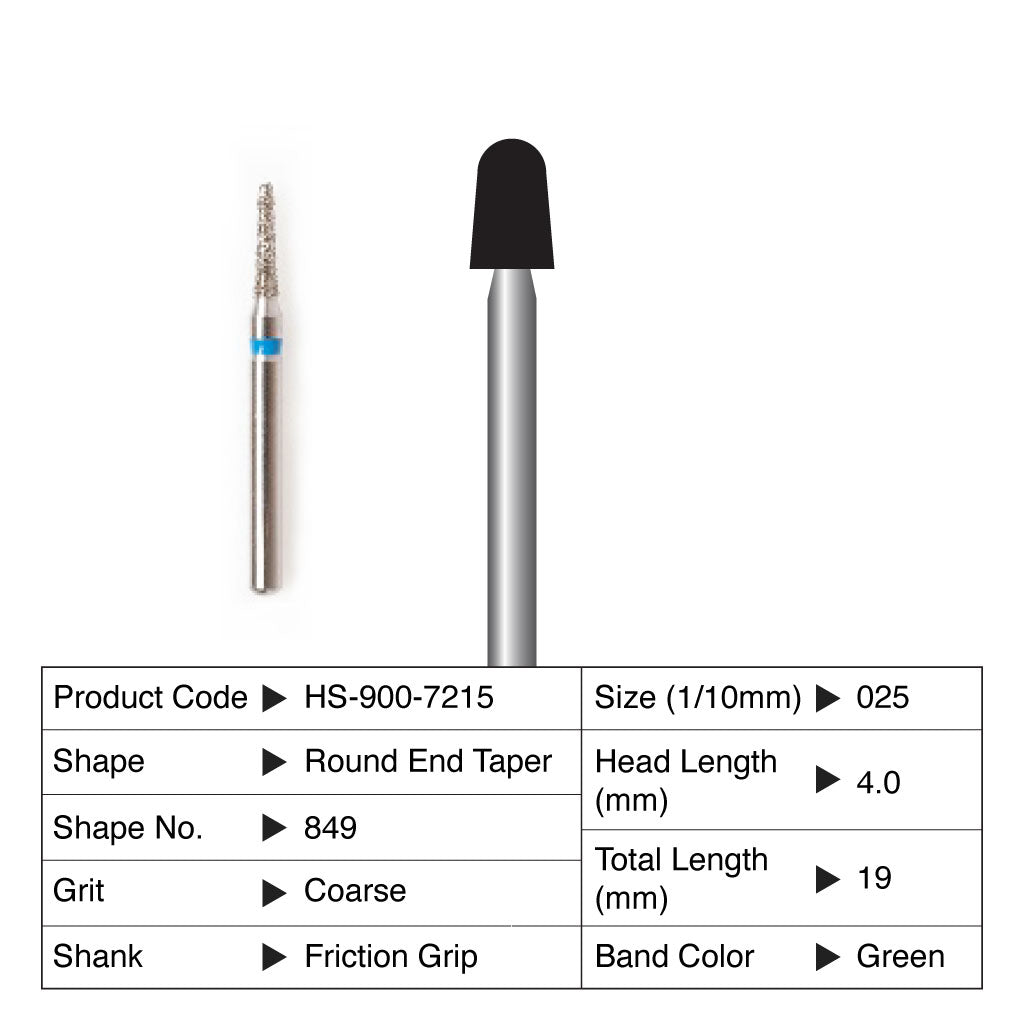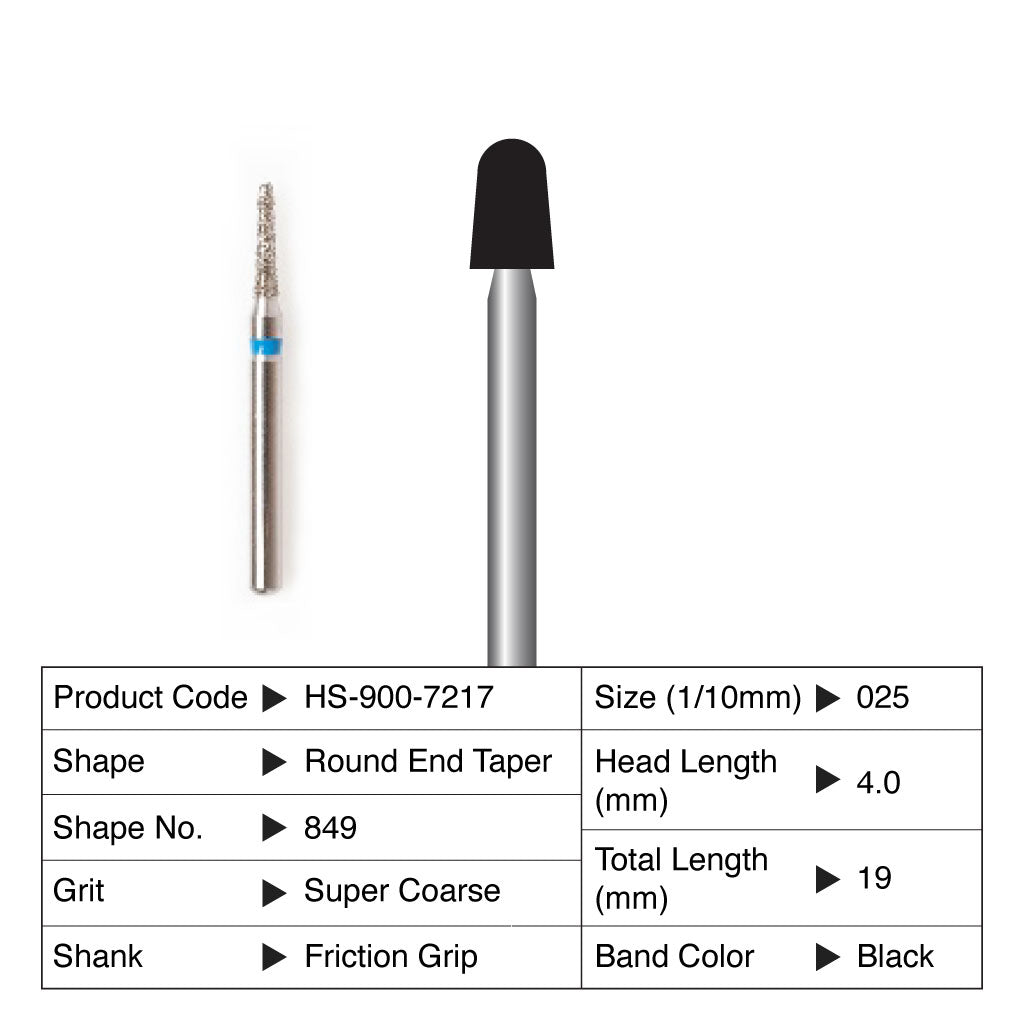 HS Maxima Diamond Bur Round End Taper Friction Grip Coarse 849-025C 5/Pack Currently not accepting retail orders.. Currently not accepting retail orders..