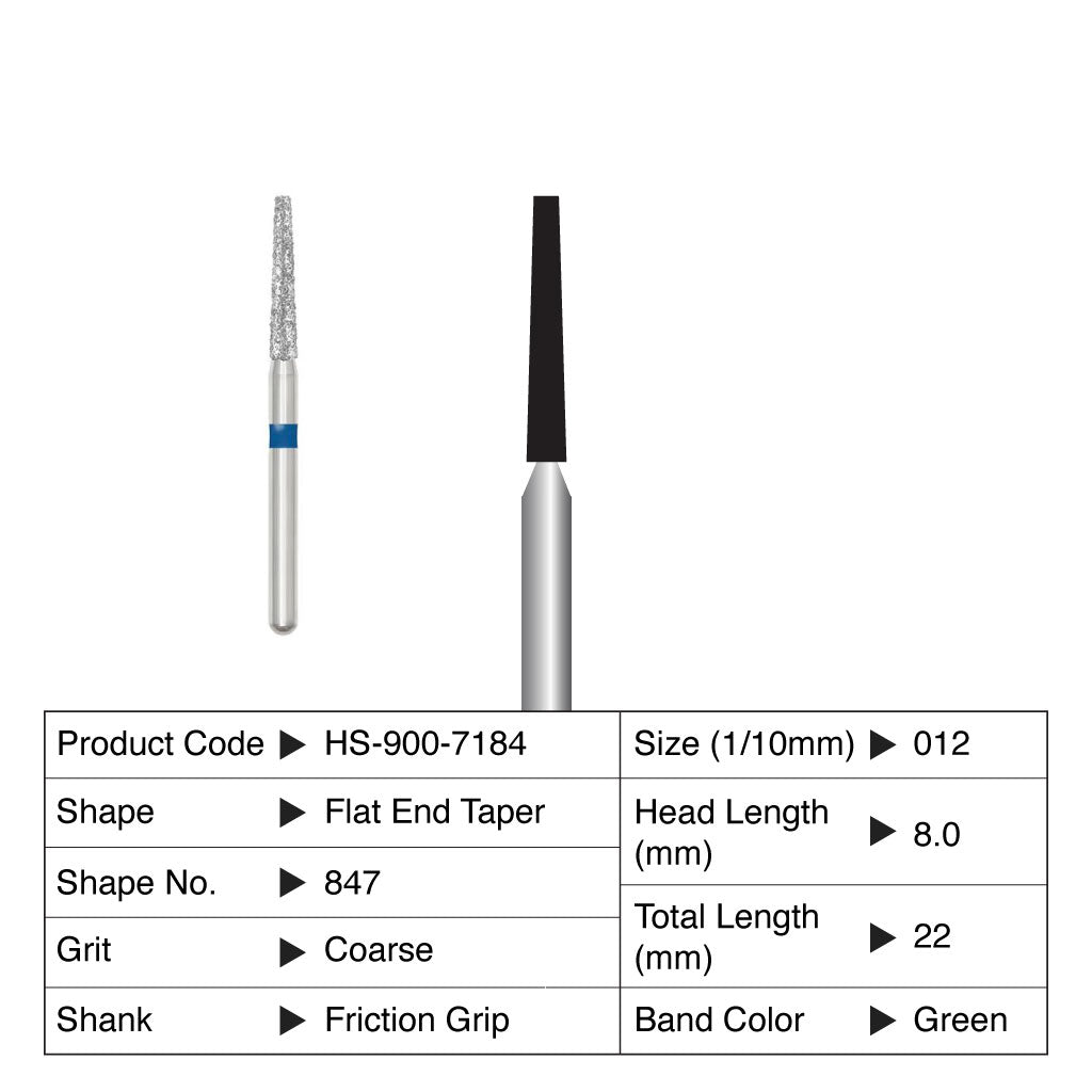 HS Maxima Diamond Bur Flat End Taper Friction Grip Fine 847-012F 5/Pack Currently not accepting retail orders.. Currently not accepting retail orders..