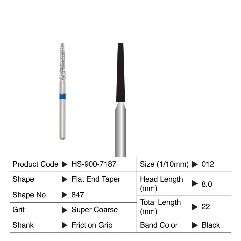 HS Maxima Diamond Bur Flat End Taper Friction Grip Super Coarse 847-012SC 5/Pack Currently not accepting retail orders.. Currently not accepting retail orders..