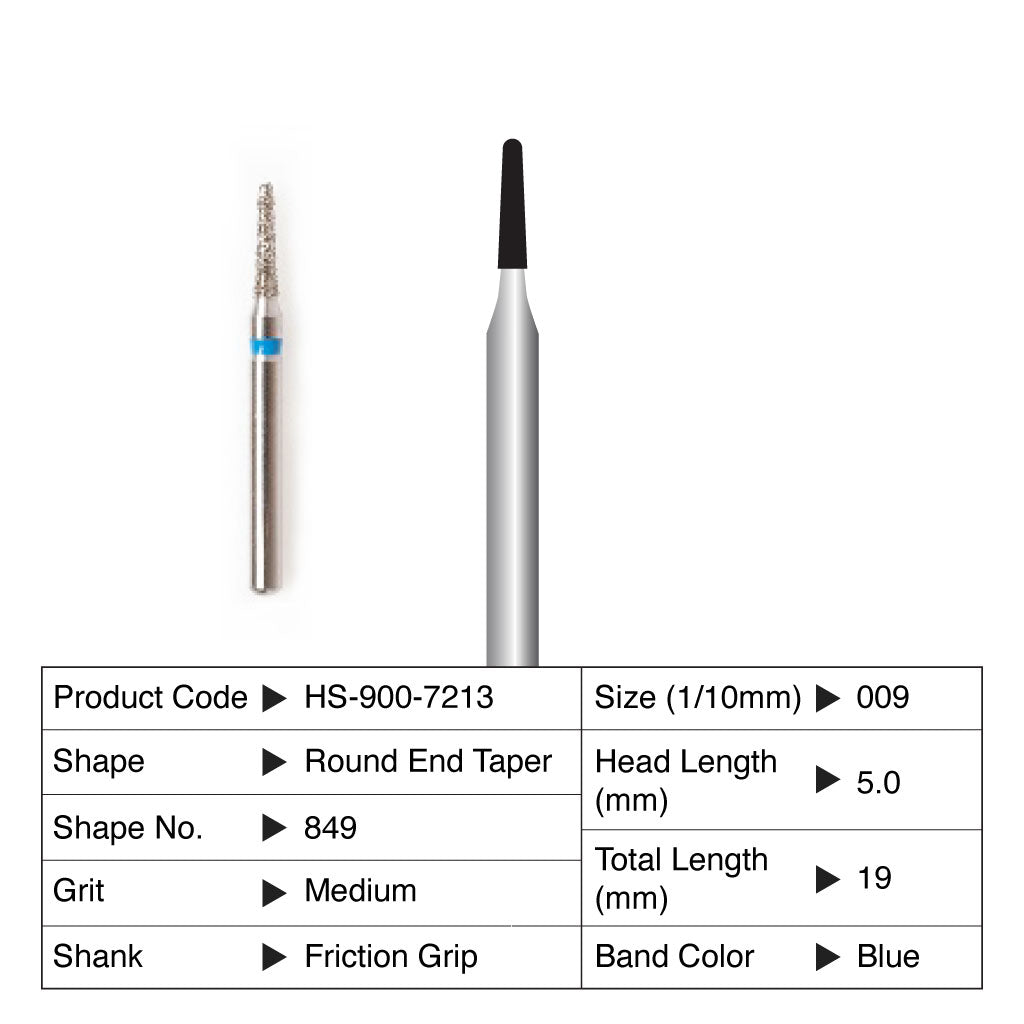 HS Maxima Diamond Bur Round End Taper Friction Grip Medium 849-009M 5/Pack Currently not accepting retail orders.. Currently not accepting retail orders..