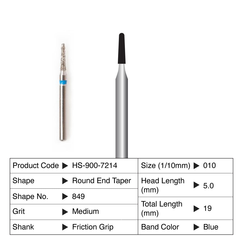 HS Maxima Diamond Bur Round End Taper Friction Grip Medium 849-010M 5/Pack Currently not accepting retail orders.. Currently not accepting retail orders..