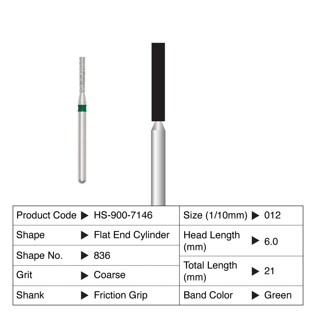 HS Maxima Diamond Bur Flat End CylinderFriction Grip Medium 835-012M 5/Pack Currently not accepting retail orders.. Currently not accepting retail orders..
