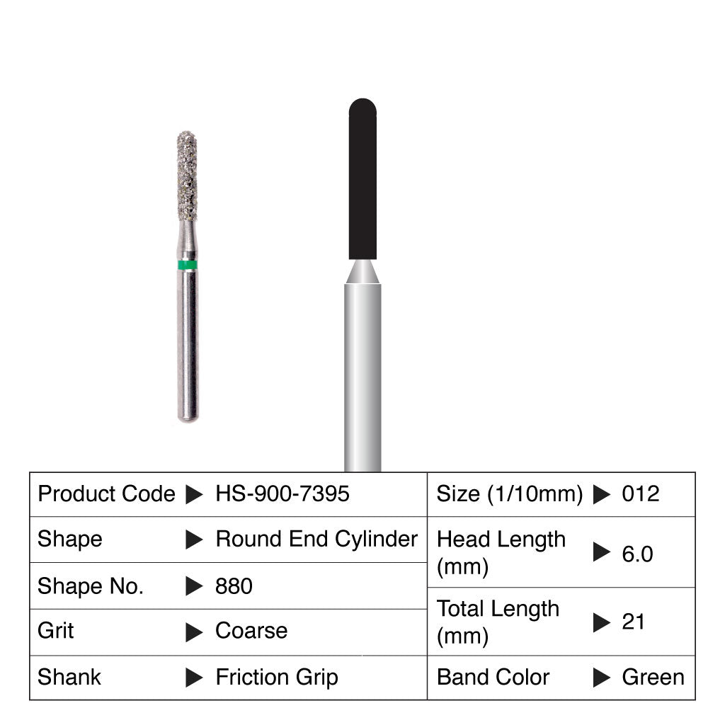 HS Maxima Diamond Bur Round End Cylinder Friction Grip Coarse 880-012C 5/Pack Currently not accepting retail orders.. Currently not accepting retail orders..