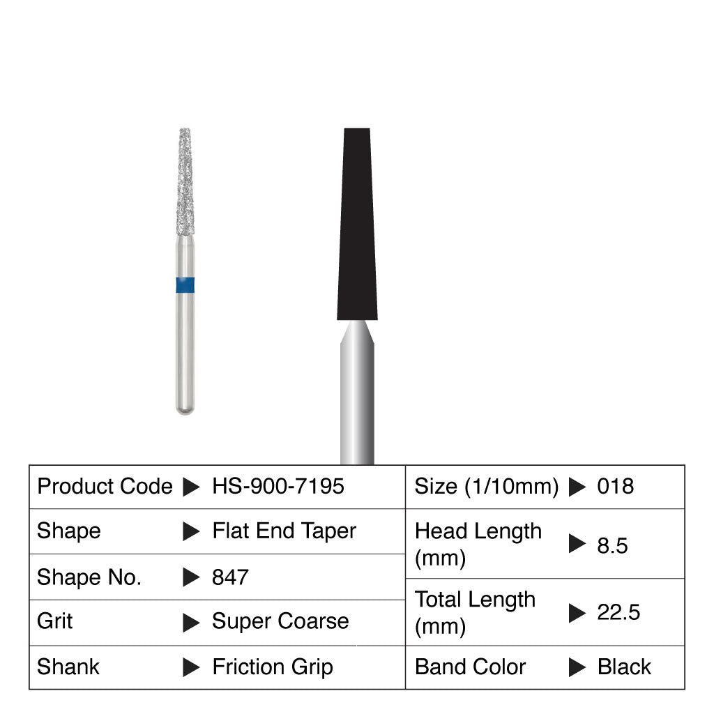 HS Maxima Diamond Bur Flat End Taper Friction Grip Super Coarse 847-018SC 5/Pack Currently not accepting retail orders.. Currently not accepting retail orders..