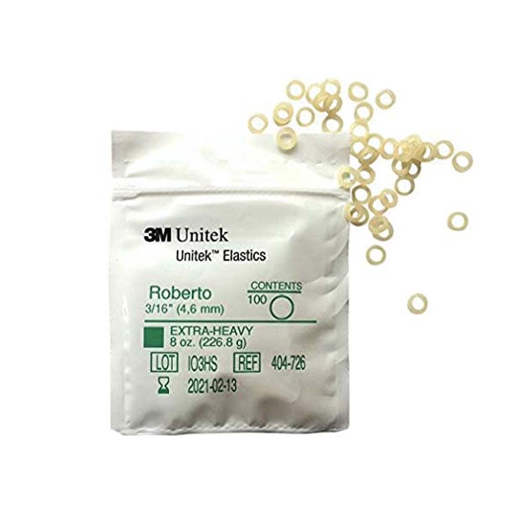 3M Unitek Latex Intraoral Elastics-Roberto, 3/16", 8oz Extra-Heavy, 30x100Pcs/Pack Currently not accepting retail orders.. Currently not accepting retail orders..